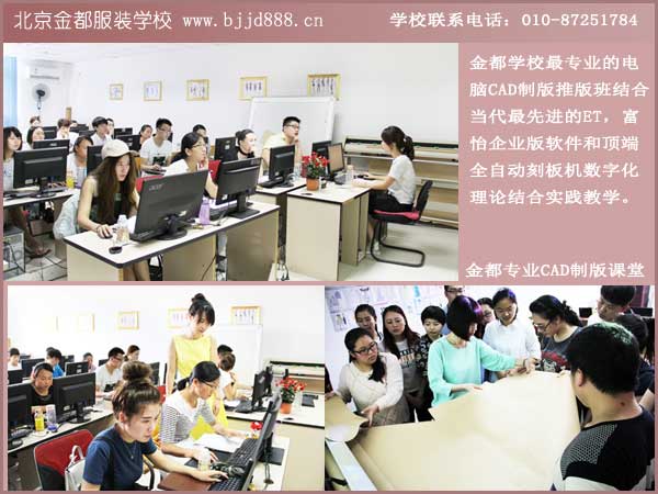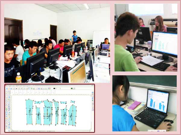 学校采取我国最先进的富怡v9和ET2012企业版软件,标准CAD教室,全套工业绘图刻板机,数字化仪;学习样板设计系统、排料系统、款式设计系统。学生人手一台电脑,全面掌握电脑CAD知识、电脑打板、推板,排料,算料,衣片生成,自动推板、排料、算料和裁片对格、对条,并学习款式设计、面料设计、模拟三维面料替换和电脑试衣。(学习者无需电脑基础,只需有服装制板经验).
