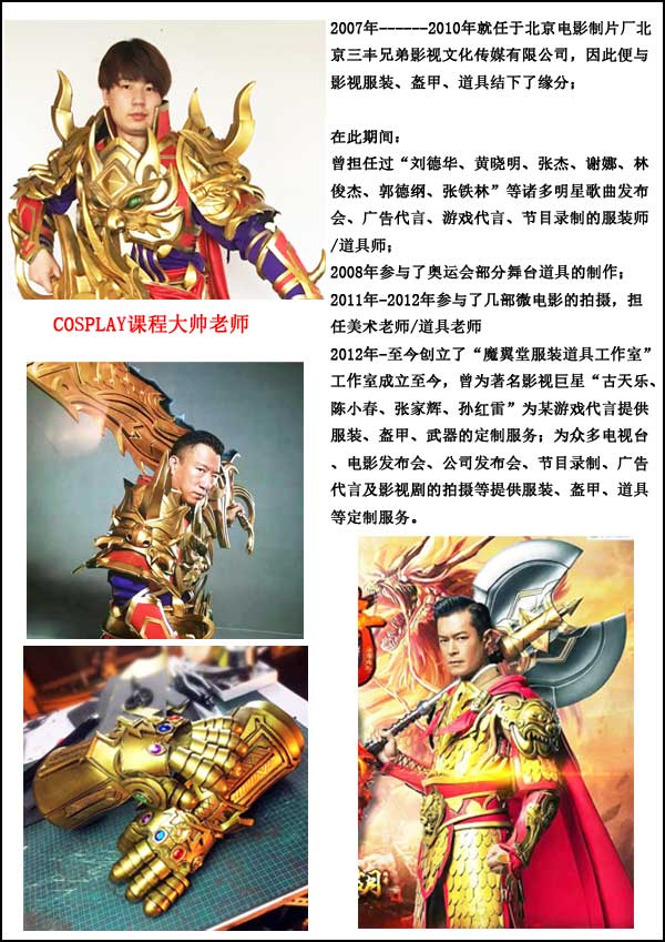 COSPLAY特效服饰道具设计制作班 学制2个月强化教学 学费:14980元